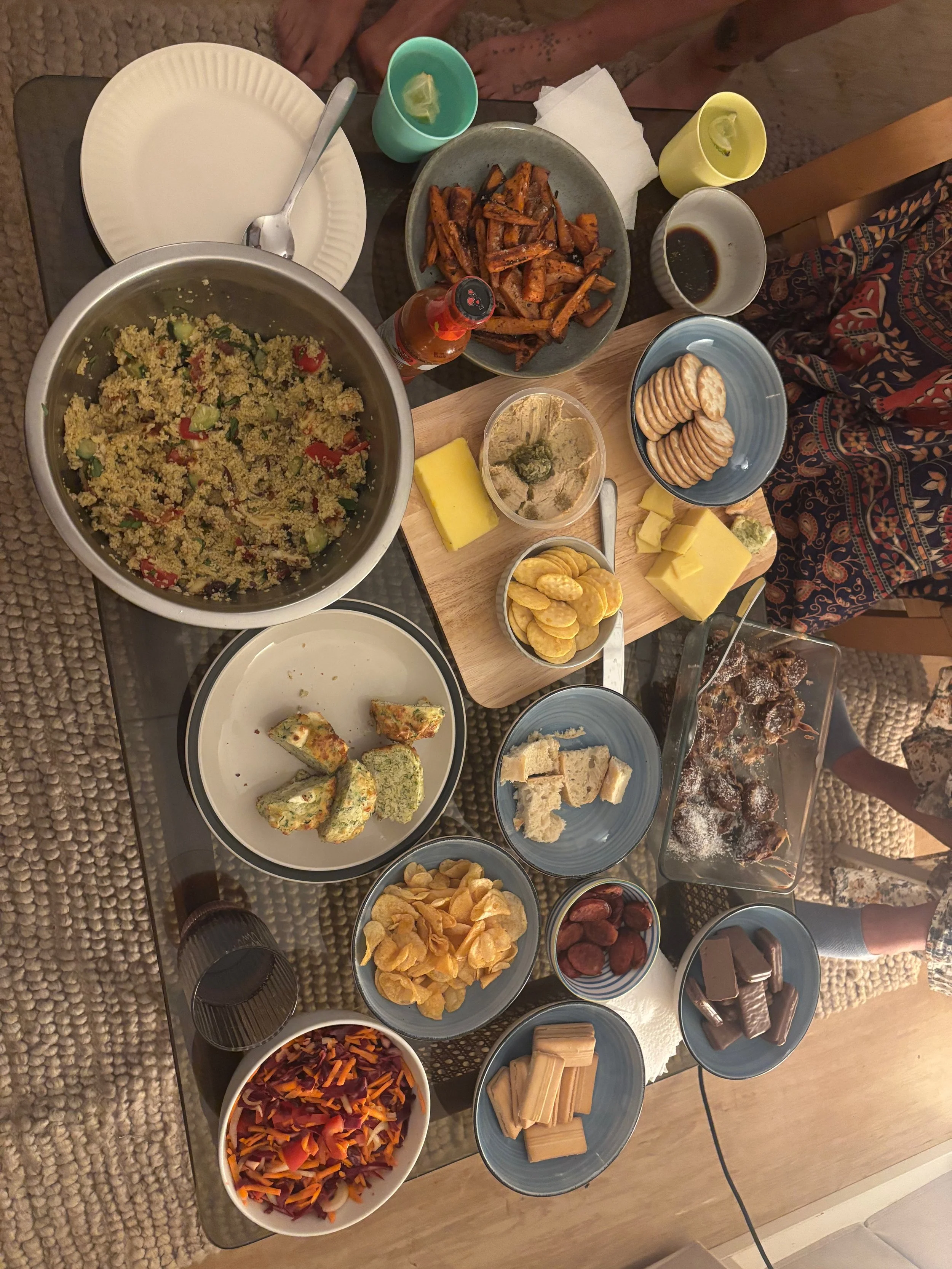 Everyone bought some nibbles so we had a lovely spread, Michelle and Gian even brought some cous cous (so nice they named it twice) with some home grown basil from their garden.
