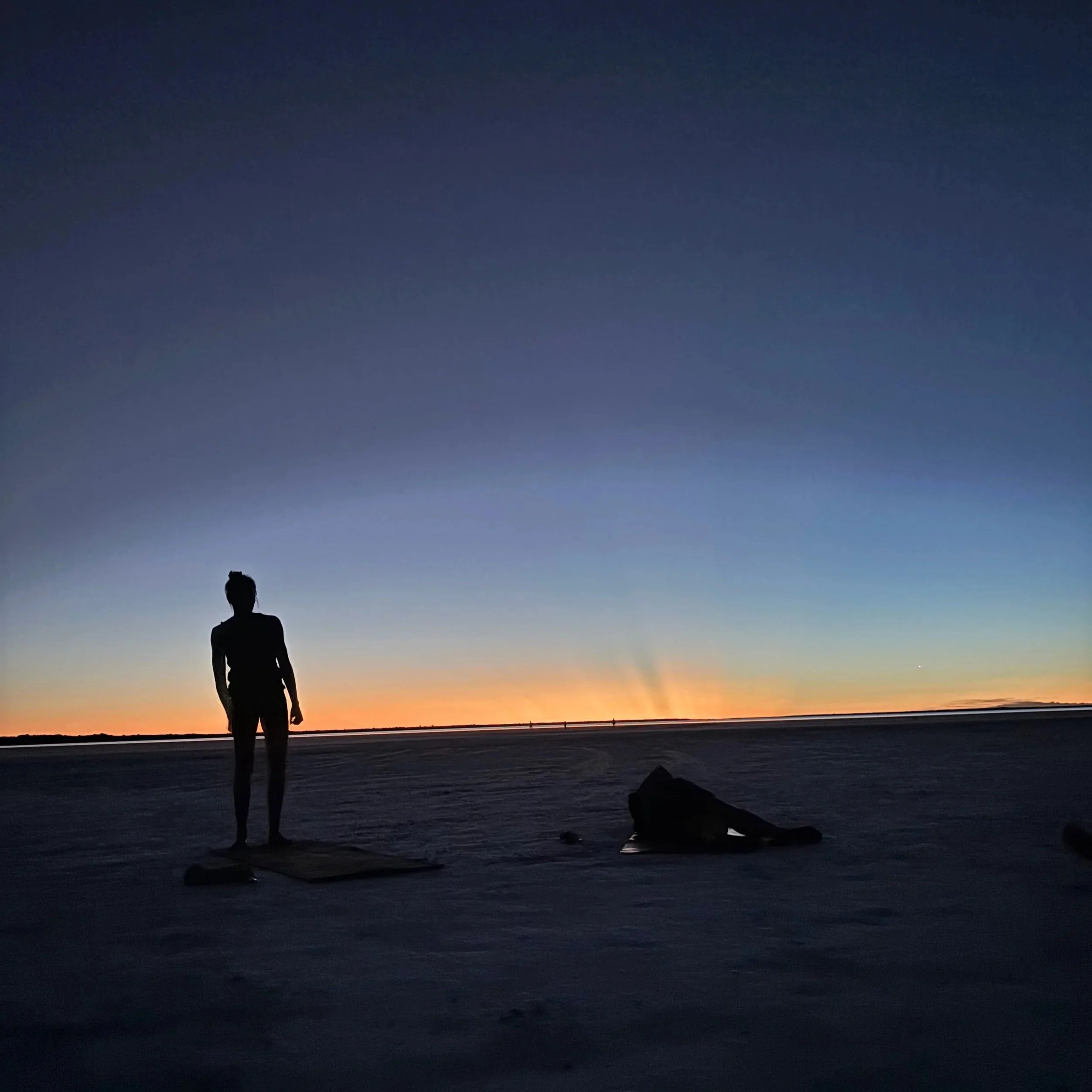 Last week we went out at sunset to do yoga on the lake and it’s something I’ll remember for the rest of my life. It’s possibly one of the best experiences I’ve had since I got here. We lay our mats in a circle at dusk on the salt lake. The water dries up this time of year so its a flat plane of salt. It’s so vast it looks like snow.