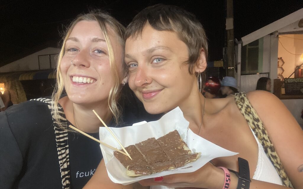 SMEIGEL AND LOTTIE ENJOYING A SENTIMENTAL NUTELLA ROTI FROM THE NIGHT MARKET