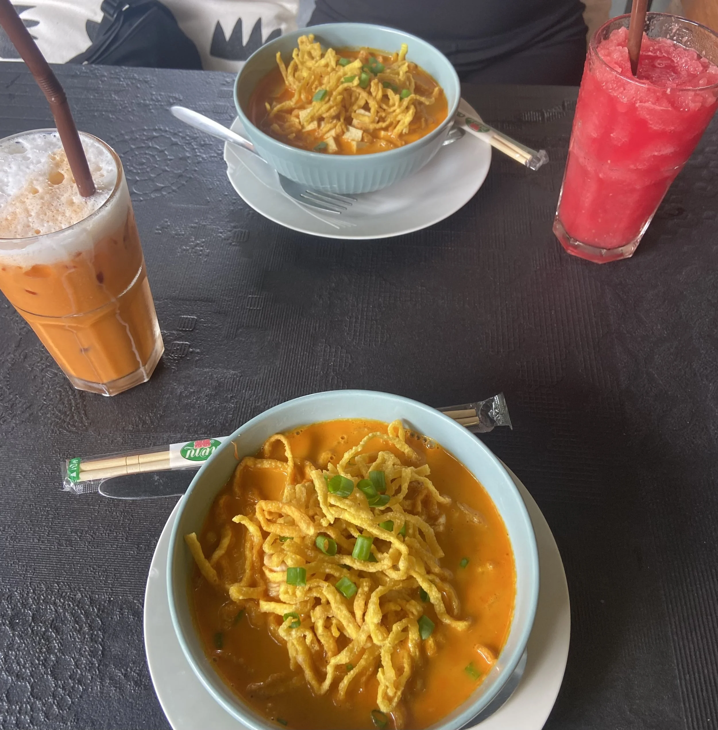 Meggie and I woke up not feeling our best selves are a solid 12 hour boozy session. We decided to seek out some Thai tea and nurse ourselves back to health (all day).
