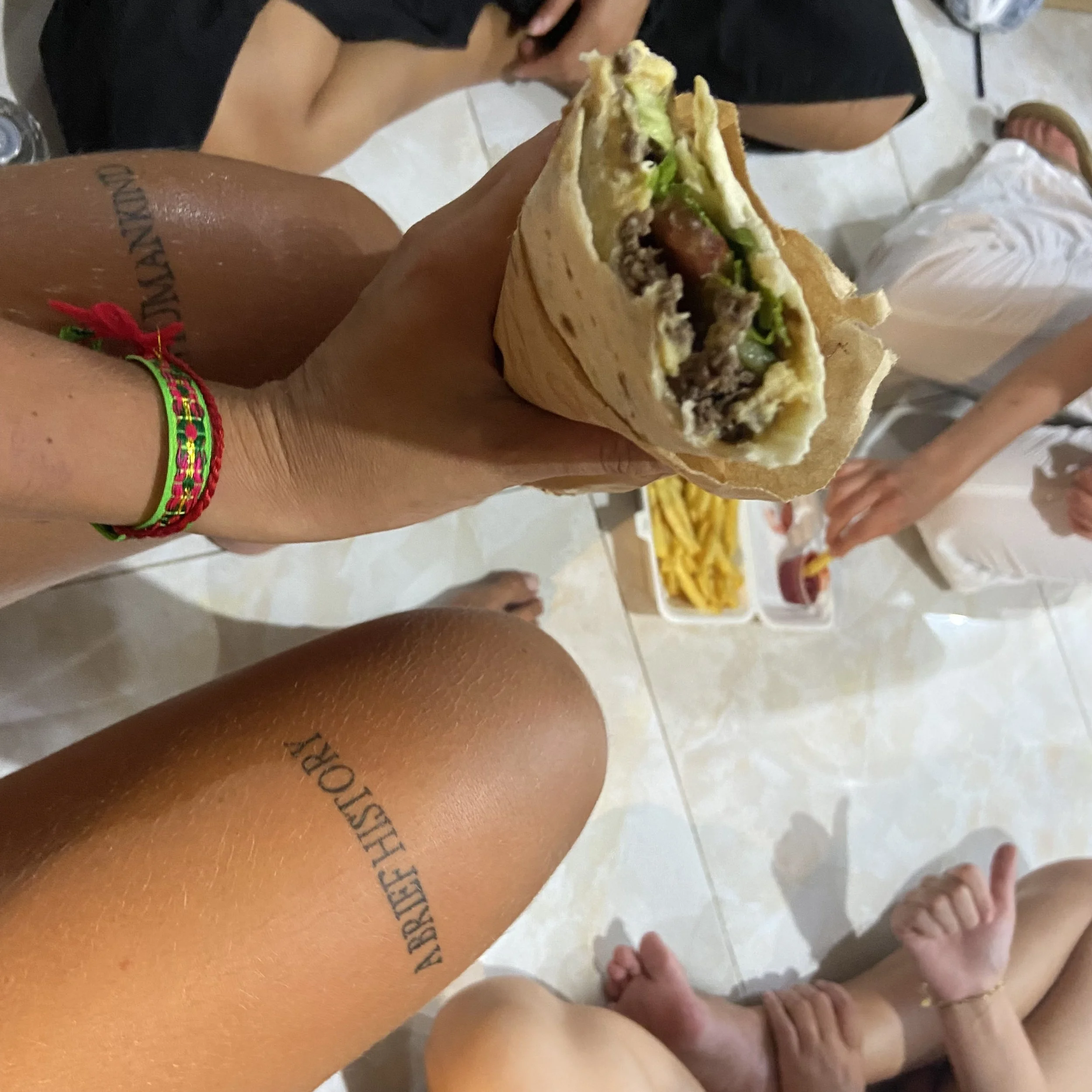 At 9.30am I grabbed to meet the tattoo artist of my dreams who I had been messaging for over a month on Instagram. She was really delightful and we spent the whole day chatting and chilling whilst we cracked on with the designs. Jade had such a beautiful studio and made me feel so comfortable that I actually fell asleep multiple times throughout. She even offered to let me use her phone to order some food.