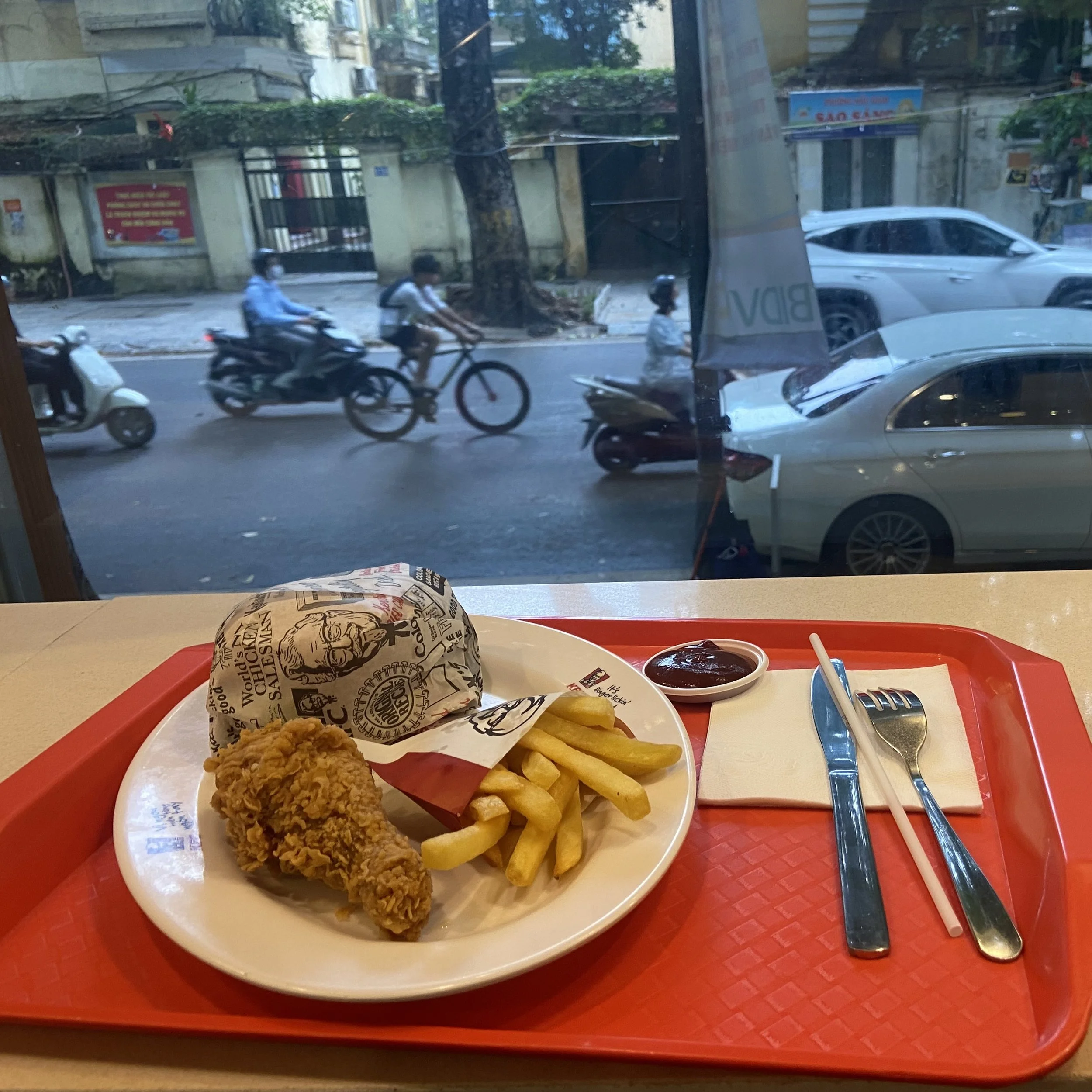 I made my long and tretchurous journey back to Hanoi, risking the same hotel I got no sleep at before. I plotted up in the foyer to wait for check-in when a man with stinky feet started talking to me. His friends, who were equally as annoying, started to chime in too and then I realised that he was friends with a very strange man I had met in Cat Ba who goes around making girls feel uncomfortable. Safe to say I was not impressed with this man. I mooched around town on the hunt for a new bag as mine had broken. I made a brief KFC stop (an easy no-fish meal), paid £50 to get my phone screen fixed, and also picked up a rather nice nock off North Face duffle bag for £10.
