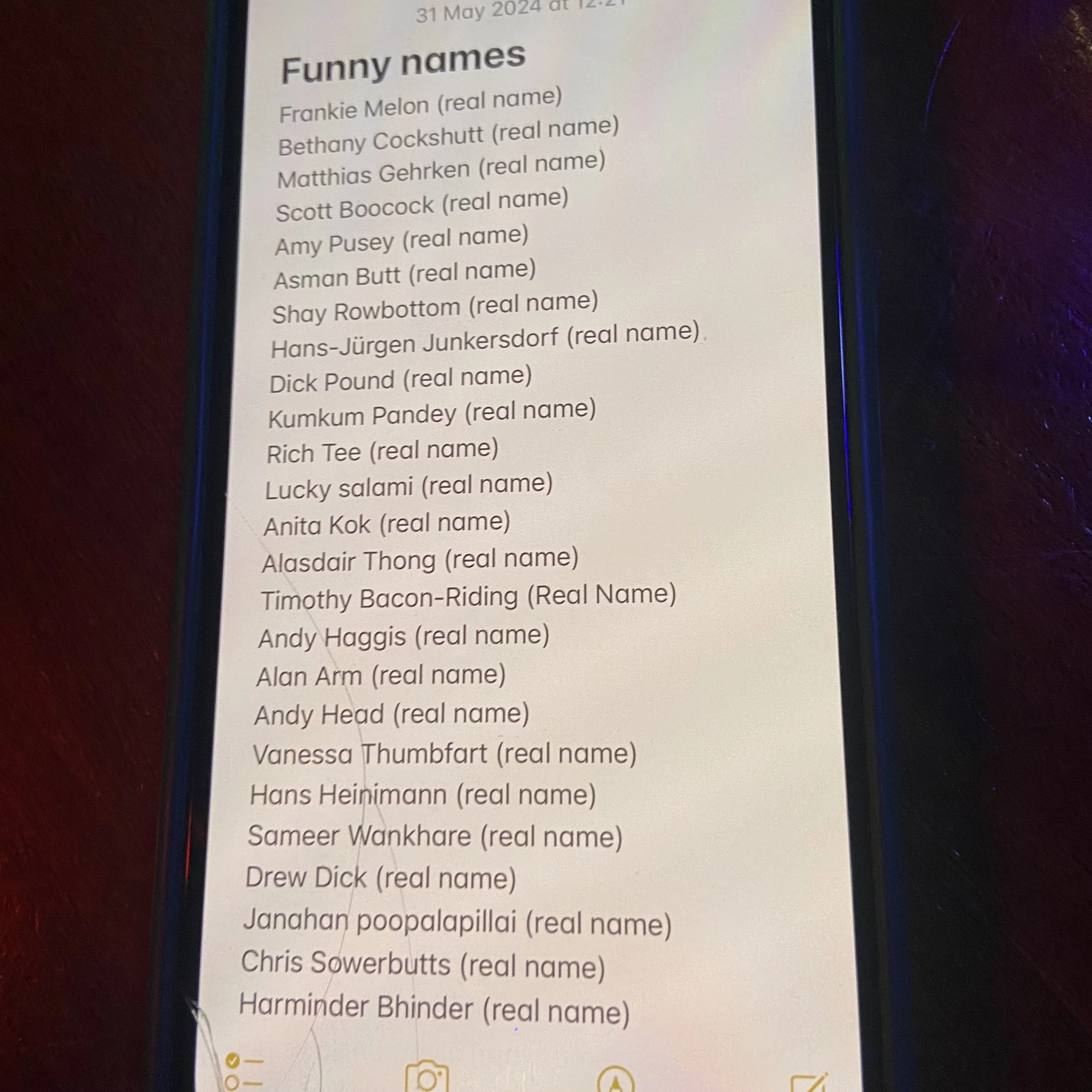 I started chatting with a Scottish guy from another table who was an avid list keeper, like myself. He works in HR and had kept note of all the funniest names he had encountered throughout his career, I was highly amused.