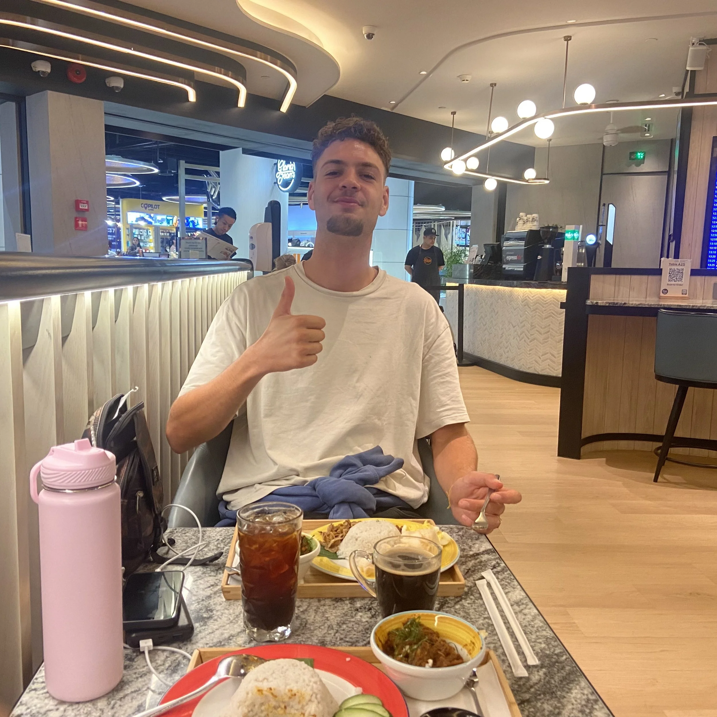 Dalia and Kyoko headed to the other terminal so to avoid the stress of potentially having to check in my bag I left it with Rafael while I picked up my ticket (lots of places don't let you check in online here) so that was also a big bonus. Everyone in the airport was looking at us because Rafael was so tall, I felt like I was with a celebrity. We enjoyed a nice breakfast together and I was ready to see my girl Solene in Bangkok.